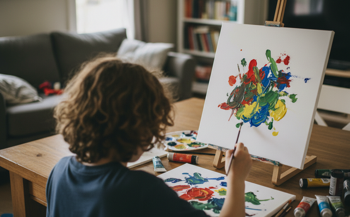 Jedes Kind erhält eine eigene Leinwand und wird 2 Stunden kreativ begleitet.